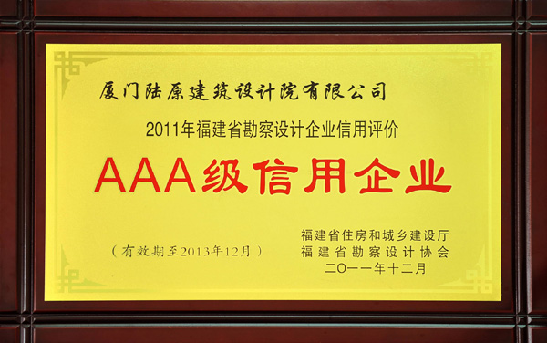 福建省勘察設(shè)計(jì)企業(yè)AAA信用等級(jí)