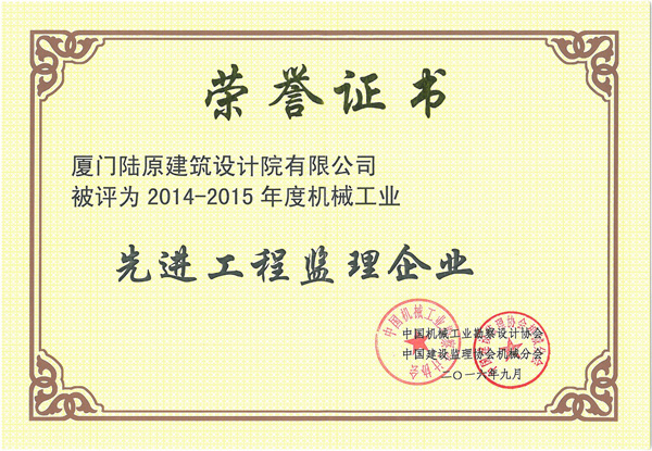 中國(guó)機(jī)械工業(yè)先進(jìn)工程監(jiān)理企業(yè)