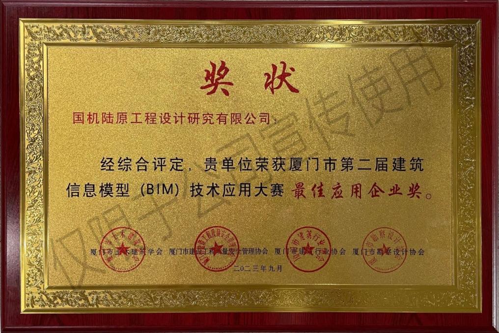 廈門(mén)市第二屆建筑信息模型 (BIM)技術(shù)應(yīng)用大賽最佳應(yīng)用企業(yè)獎(jiǎng)
